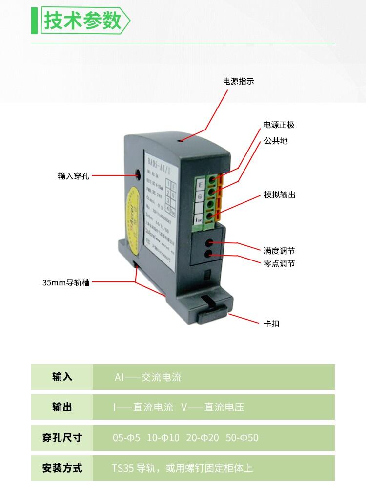 交流电流传感器 安科瑞BA10-AI/V 模拟量输出0-5V