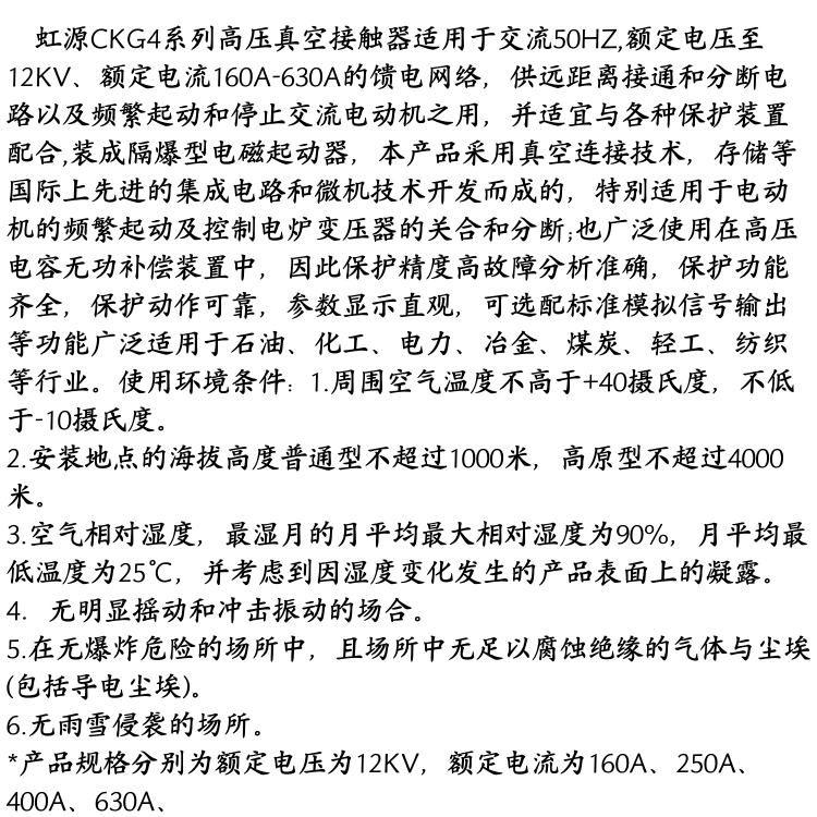 虹源 HYZ1-6KV/2500A 矿热炉用真空接触器