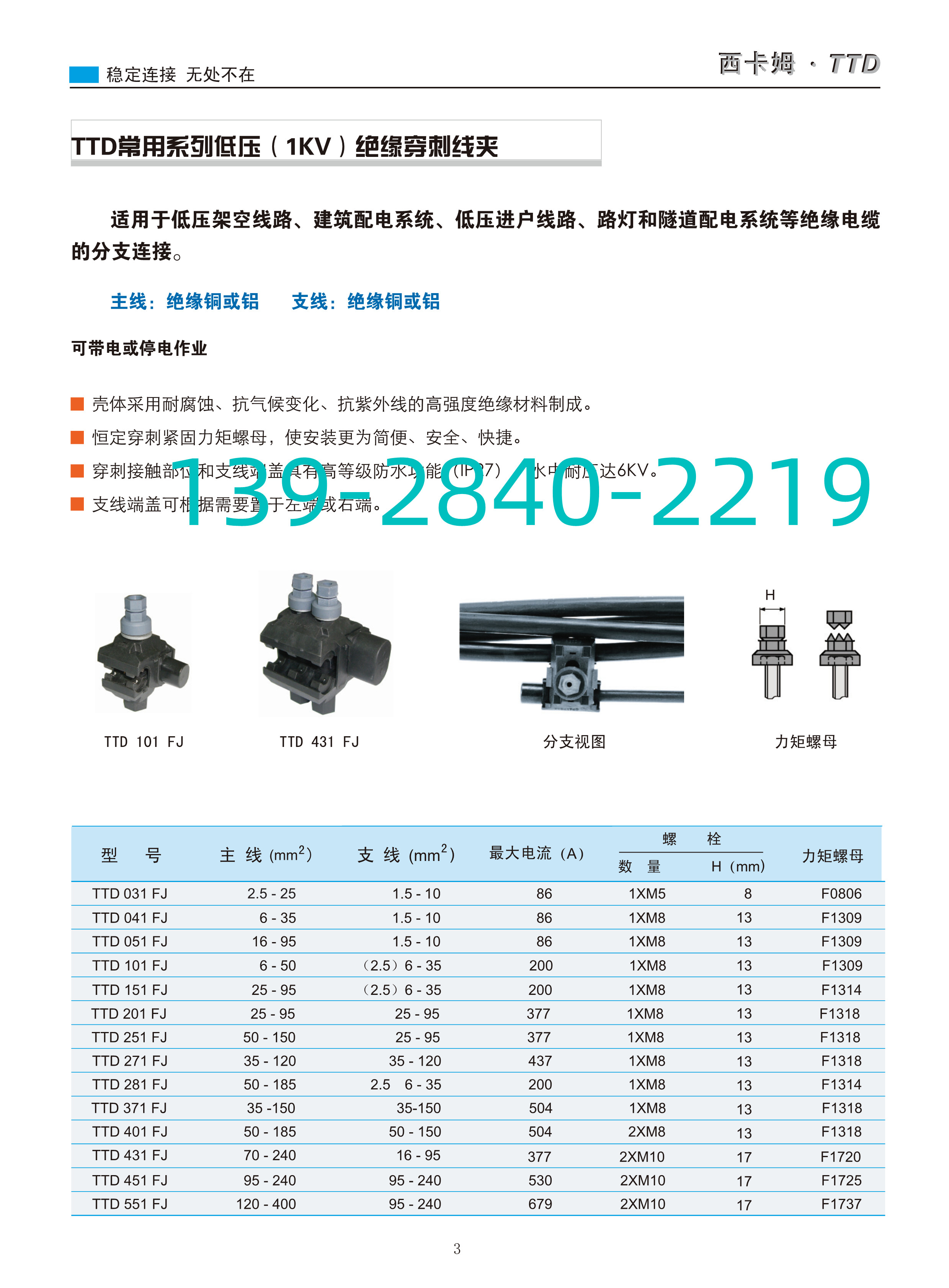 1.安装前请再次确认,绝缘穿刺线夹是否与现场电缆截面匹配!