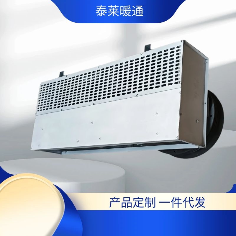 RM系列热空气幕按结构和用途分为:贯流式和离心式两种热空气幕,送风方式为上送式。盘管通入热媒后,空气幕出风口喷射出一定厚度的均匀幕状热气流,可以阻止室外冷空气的侵入,从而减少了室内热量损失,达到保持室内温度稳定的目的。同时由于热气流作用,可以阻止尘埃、异味窜进室内,