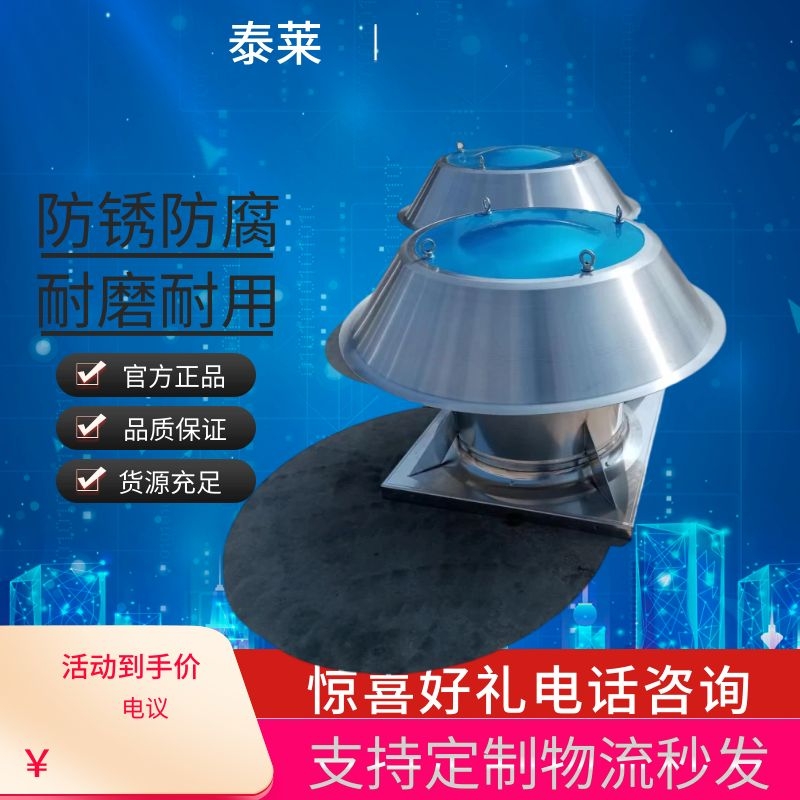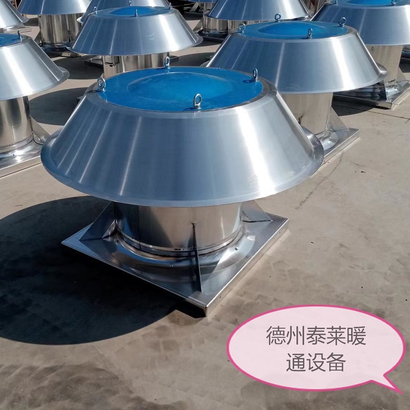 防爆屋顶风机RTC-675/750/900全铝屋顶离心式风机振动小。外壳采用热喷涂最新防腐工艺处理,抗潮湿大气的腐蚀性强,能保证风机在房外条件下稳定运转。适用于电力、石油、化工、冶金、仓库等现代化建筑设计的强制通风。风机垂直安装在屋顶上,有蘑菇形风帽房雨雪。还配有能自动开启的活页风门,风机停止运转时风门关闭,以减少科季室内热量的散失,活页风门为风机附件,由用户在定货时选用。蘑菇形风帽及机壳由玻璃钢制成。风帽和机壳可拆卸分开,便于安装,维修。叶轮直联在电机上,采用玻璃钢机翼形叶片上,使风机有良好的气动性能风机运行时工作介质为工业大气,配用普通电机时介质温度≤40℃(配用防爆电机时,介质≤温度55℃)。当介质温度为25℃时,相对湿度不超过95%,介质的含尘量(含固体杂质)应不超过100毫克/立方米。如风机运行条件超过上述规定,需在定货时提出,作特殊设计。工厂提供的风机性能,均指在标准状况(温度为20℃、相对湿度50%,大气压力101325Pa(760毫米汞柱)气体比生1.2公斤/立方米)时的空气性能。如果通风机在非标准状况下工作时,其性能则要通过相应的公式换算。防爆屋顶风机RTC-675/750/900全铝屋顶离心式风机