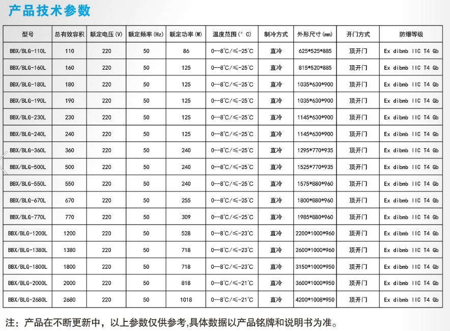 ◆防爆冷藏柜按照GB3836系列标准的要求进行防爆设计,采用特殊加工工艺和制造方法进行生产。可广泛应用于1区2区防爆级别,涵盖国防、科研、石油、化工、医药、制造业工厂等存在或可能存在IIA、IIB级,T1~T4组可燃性气蒸汽与空气混合形成的爆炸危险场所等环境下工况下有冷藏要求的场所设计的特种冷藏设备,具有冷藏功能。