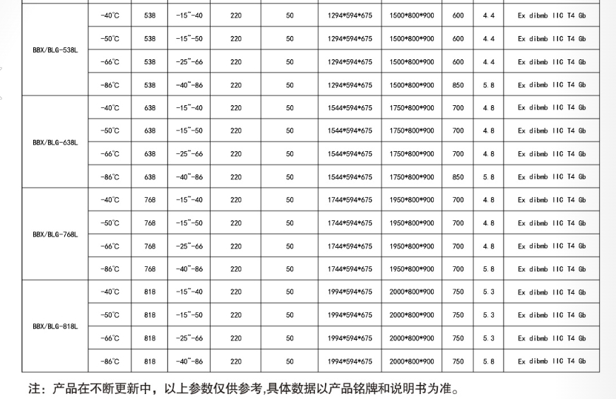 ◆所有超低温防爆冷藏柜出厂时,均附有全套产品技术资料和安装使用说明书,请用户务必严格按说明书的要求进行安类和使用。