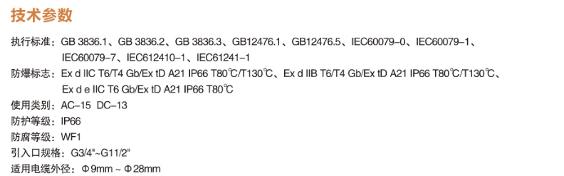 ◆适用于‖A、‖B、IIC级爆炸性气体环境;