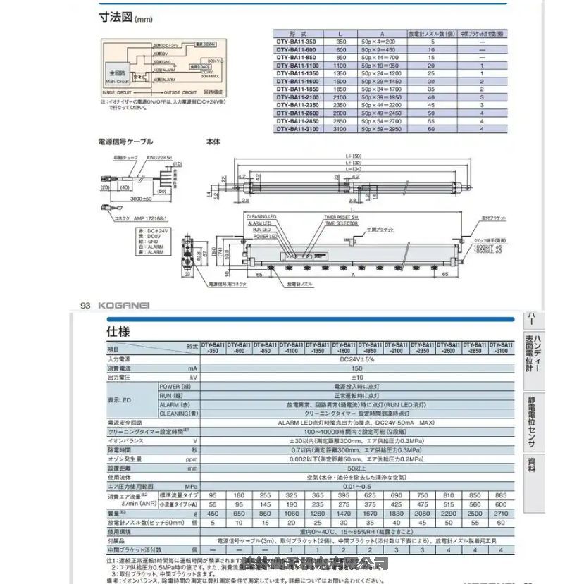 优势供应日本KOGANEI小金井静电消除棒DTY-BA11-1600