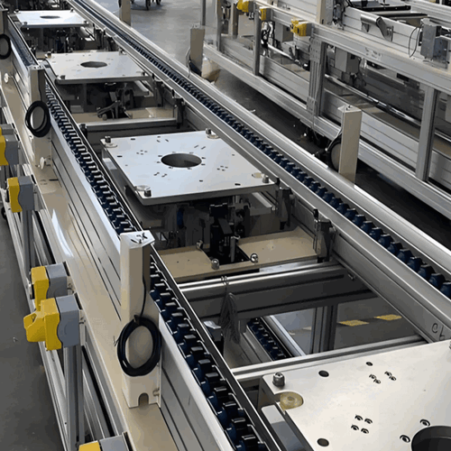 支持水平、爬坡、转弯等多向布局,兼容工装板(钢板/工程塑料板)和托盘输送,空间利用率提升30%以上?。