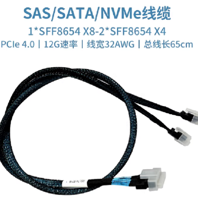 SFF8654x8i-2xSFF8654x4i Slim SAS连接线65cm适用NVMe转接卡硬盘连接