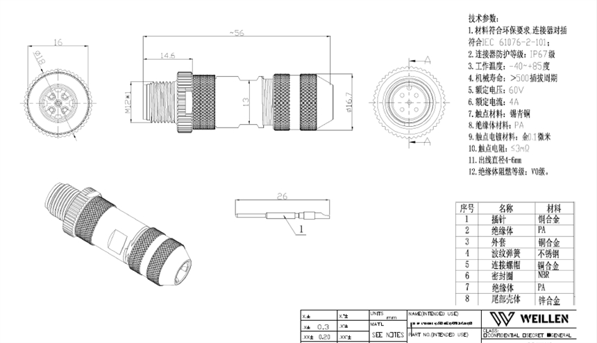 M12 5P A-CODING 公端屏蔽压接型组装式连接器