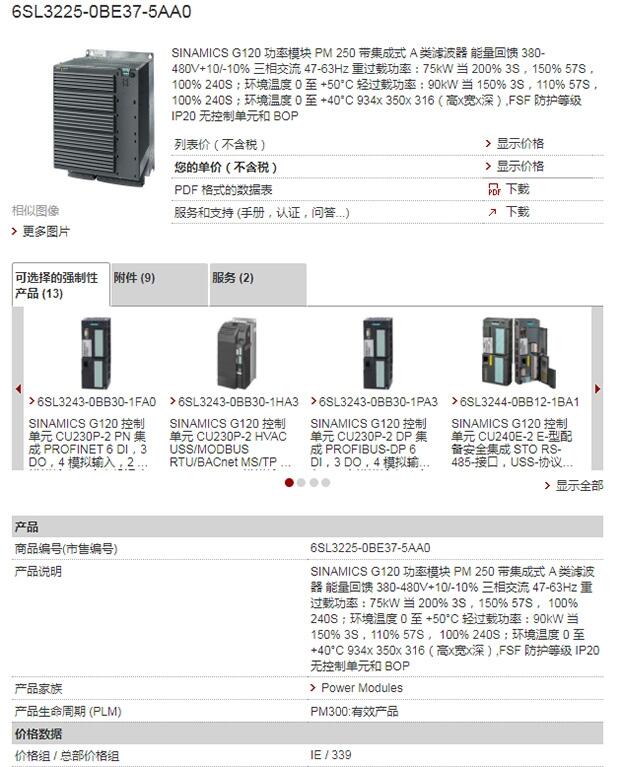 • 规格:6SL3225-0BE37-5AA0