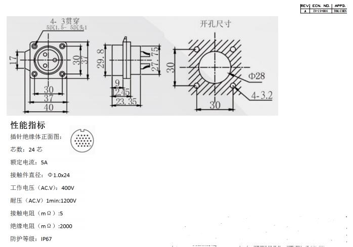 圆形连接器 24PIN 母插座
