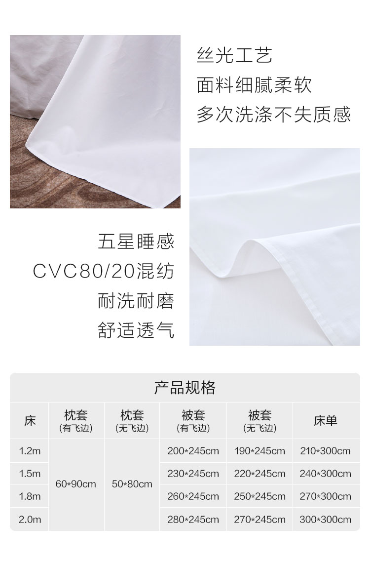 安芯中高端酒店通用床单纯白60支加大加厚全棉贡段布草床品
