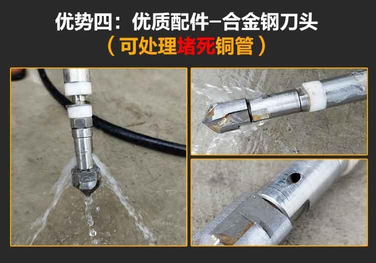 适用范围:中央空调清洗机的管道清洗机适用于一,冷凝器 二,换热器三,热交换器 四,空气预热器 五,蒸发器 六,加热器等换热管路的内表面清洗以及各种管道生产企业管道内表面清洗抛光。广泛应用于电厂、化工厂、食品加工厂、制药厂、管道生产加工厂、宾馆大厦等领域。它使管路清洁化难为易,一人即可操作,方便快捷。当清洗刷头或刀头在管路中高速旋转时,水亦同时喷出,冲洗已松动的污垢,使管路彻底被清洁。适用管径:6.35mm-25.4mm