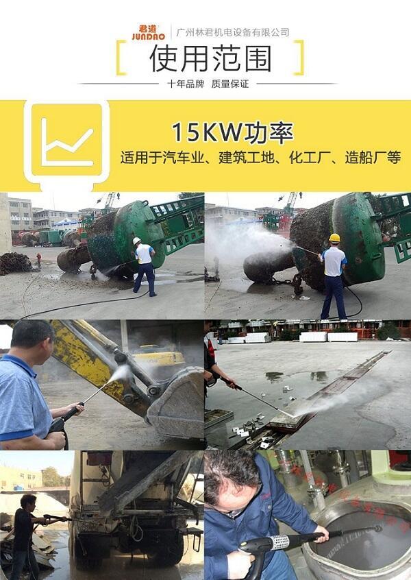 超高压冷水清洗机,工作压力350公斤,水流量每分钟22升,采用三陶瓷柱塞曲轴泵,低速电机,机身紧凑四脚轮装配移动灵活轻便,适用于预热结皮清堵、铸件表清洗、化工树脂及冷凝器列管清洗疏通等。广泛于造纸厂、化工厂。