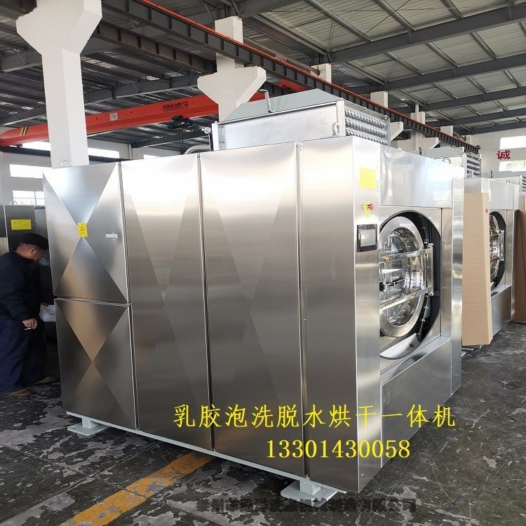 乳胶手套泡洗烘干一体机具有性能稳定,使用寿命长。该机器集美观、占地面积小、维修方便与一身。变频控制驱动保证脱水振动小,具有更好的速度控制。电脑控制面板先进友好的人机对话界面,操作方便。