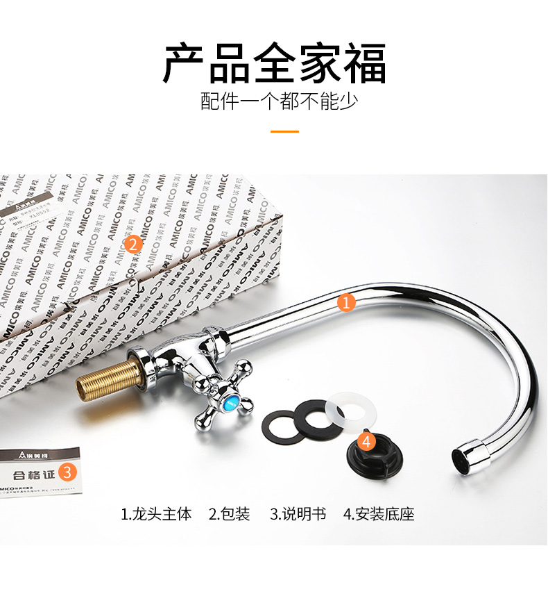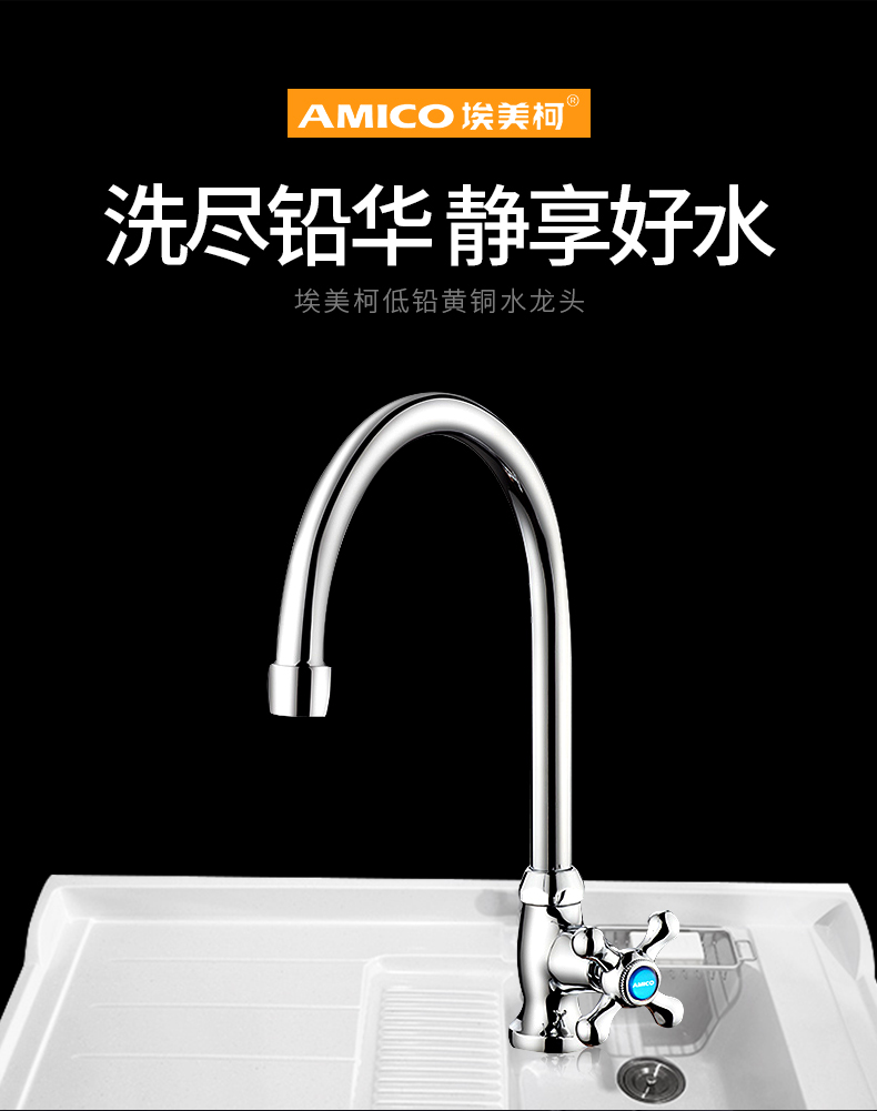 厂家直销埃美柯单冷厨房龙头全铜洗衣池菜盆洗涤龙头可360度旋转