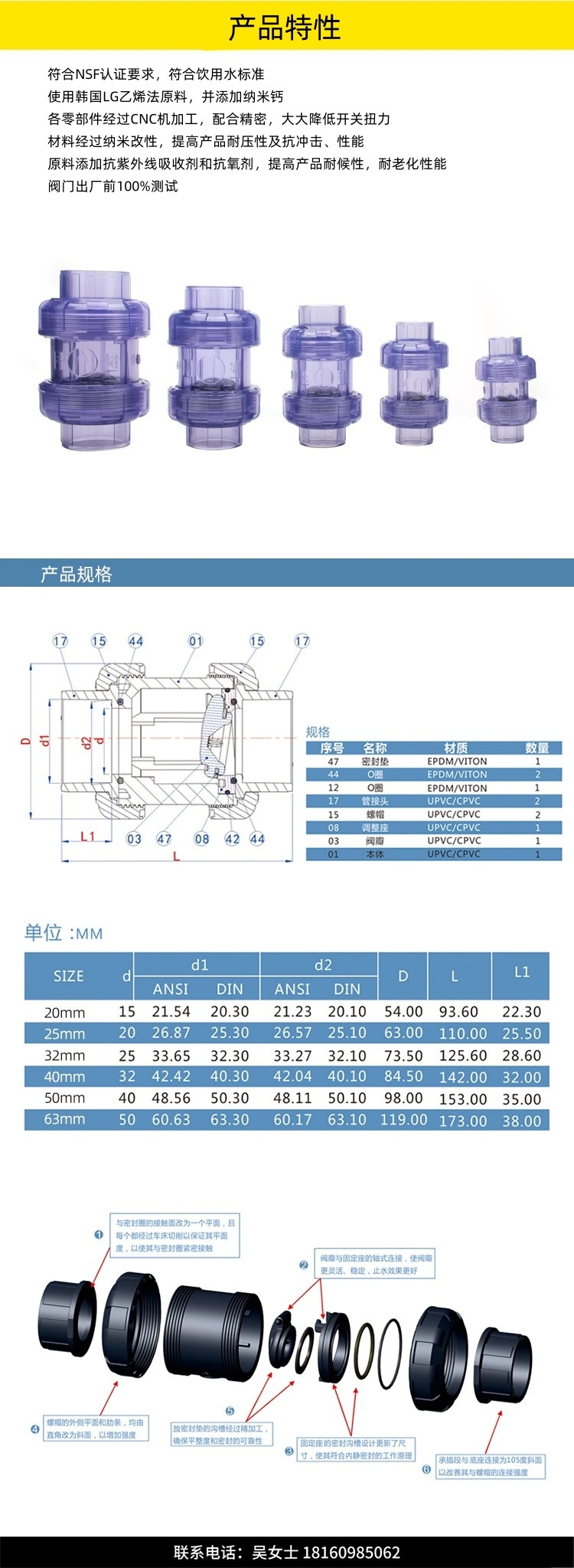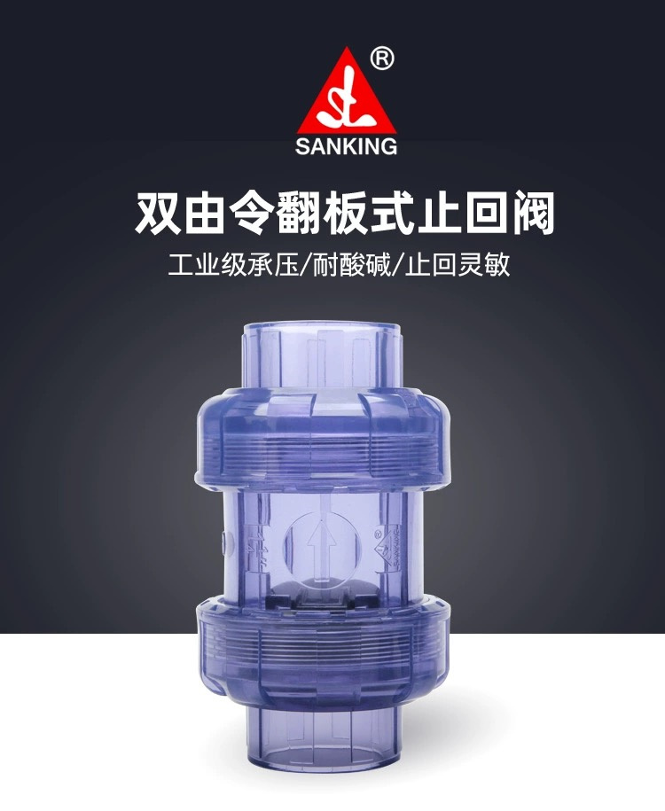 三厘SANKINGPVC透明双由令翻板式止回阀双活接双尤令
