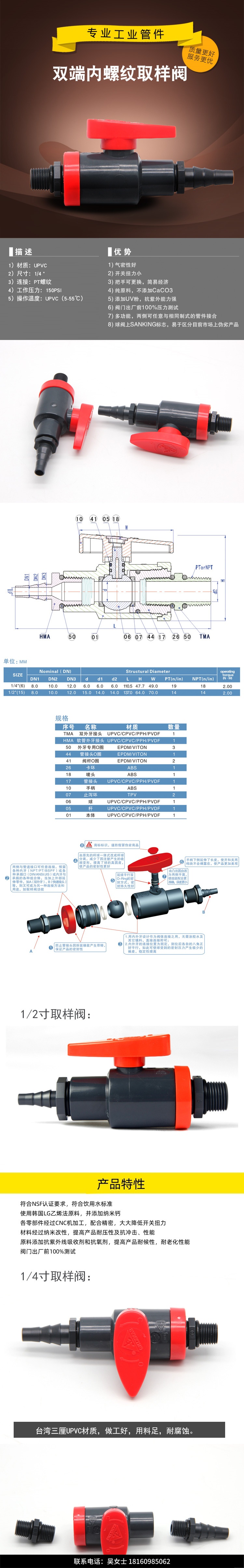 三厘SANKINGPVC取样阀化工工业级球阀源头厂家直发
