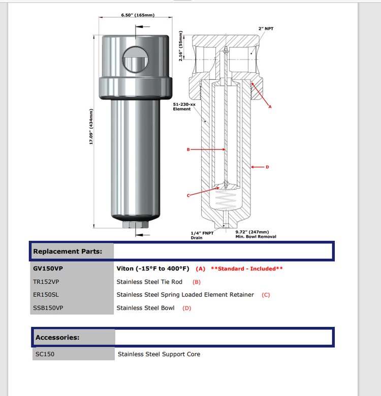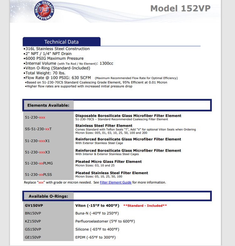 过滤精度 | Buna-N(-40°F to 250°F) | ||