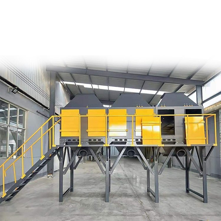 根据活性炭吸附和催化燃烧两个环保净气原理设计。设备主要由过滤箱