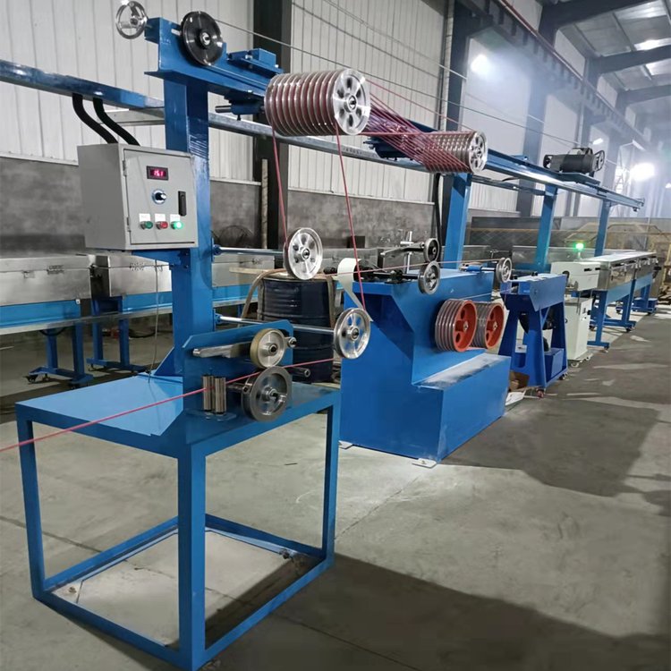 设备组成:1.放线(主动,被动,端轴,无轴,龙门式等);2.预热器(可选);3.整直;4.主机;5.测径仪;6.喷码机或印字机(可选);7.硫化道;8.牵引(轮式或履带式);9.储线架(可选);10.过粉机;11.火花机;12.收线(双盘,端轴,无轴,龙门式等);13.主控箱