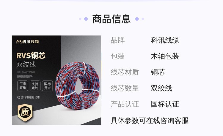 科讯线缆RVS铜芯双绞线国标定制足米直销