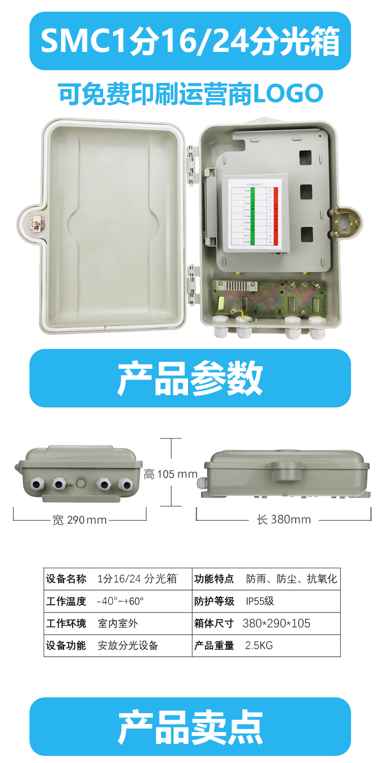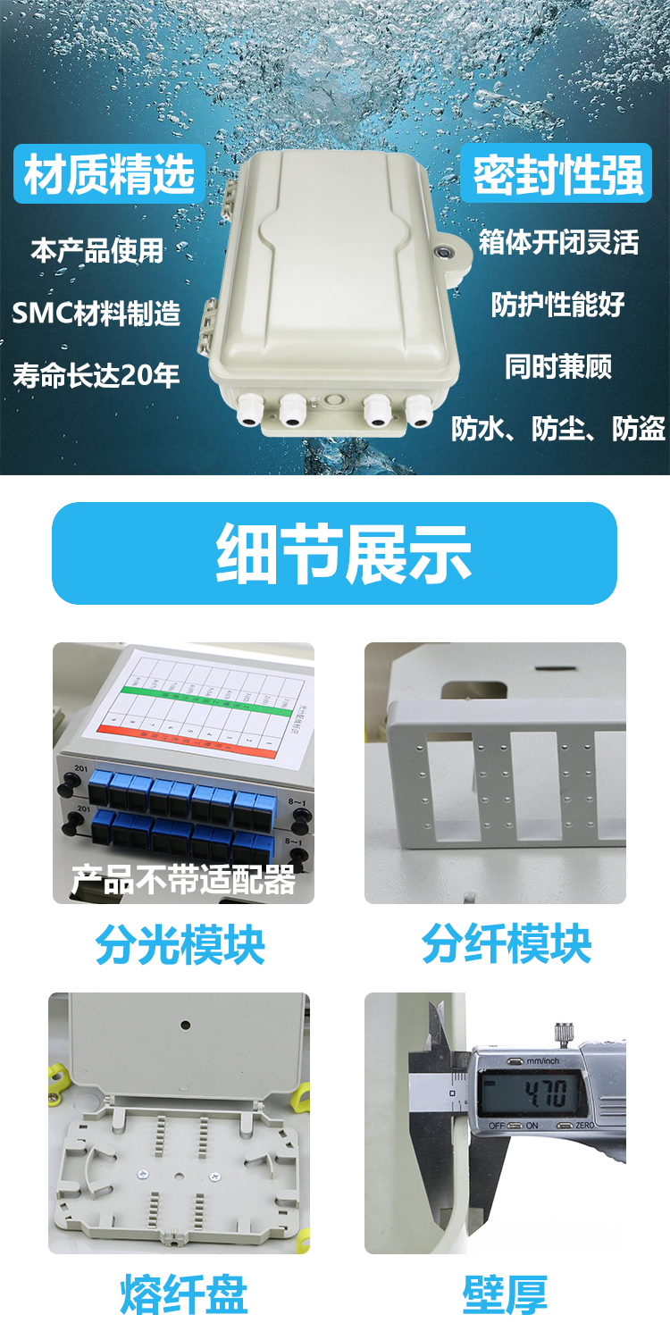 厂家直供SMC材质24芯光纤分纤箱/分线箱/配线箱/入户箱 材质 | SMC(玻璃钢复合材料) | ||