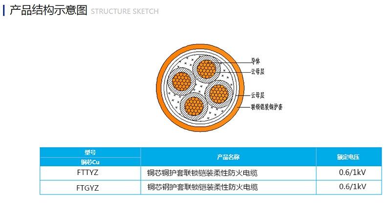 产品特性:极高的防火、防水和防冲击性能;大长度大截面连续化生产;电缆采用金属护套和无机矿物