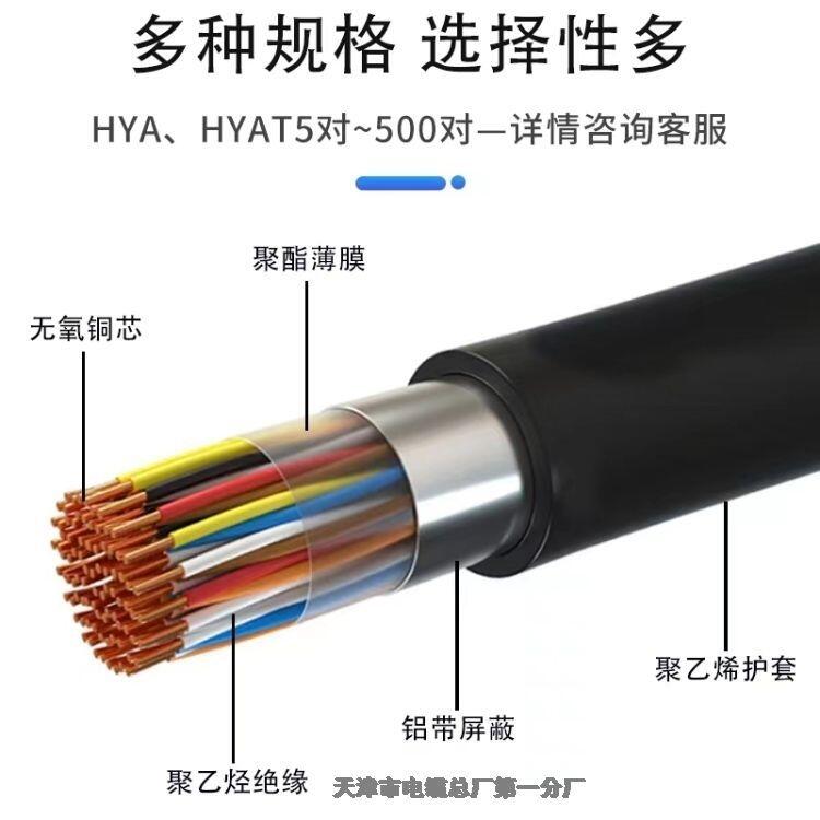 HYA22:铜芯实心聚烯烃绝缘挡潮层聚乙烯护套钢带铠装聚护套市内通讯电缆