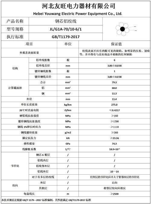 四、钢芯铝绞线70/10平方绍兴LGJ现货厂家量大优惠产品基本参数及样本图片: