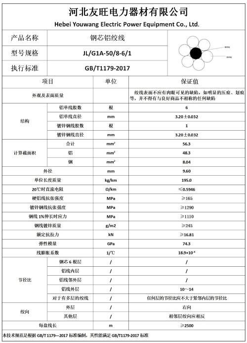 四、LGJ50/8钢芯铝绞线沧州导线厂家报价产品基本参数及样本图片: