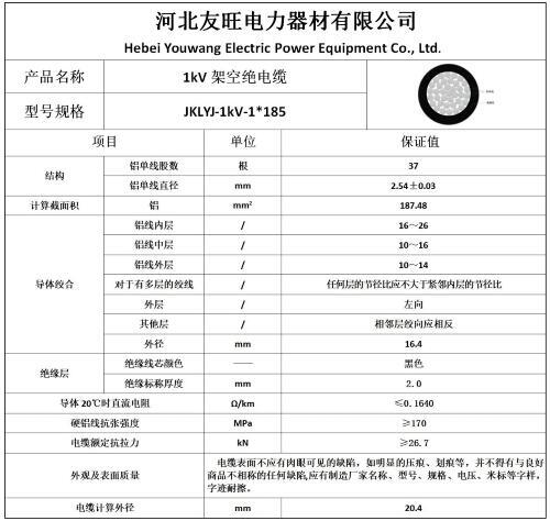 四、架空绝缘线厂家直销JKLYJ185 天水国标导线市场报价产品参数及样本图片: