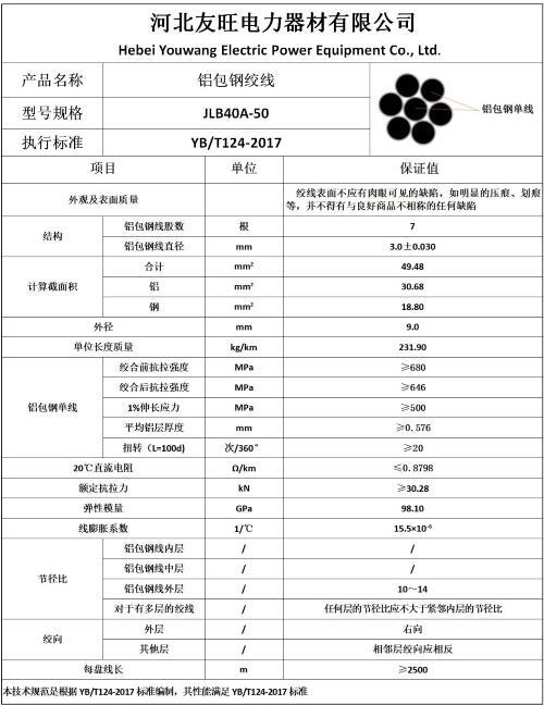 四、JLB40-50铝包钢绞线厂家现货直销价格产品参数及样本图片: