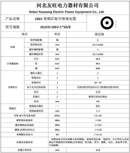 四、 湛江镀锌钢绞线厂家供应JKLGYJ-10KV-50/8架空线价格产品参数及样本图片: