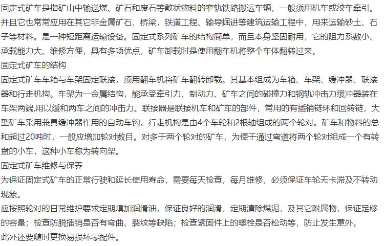 固定式矿车矿山固定矿用车输送煤块使用方便巷道运输设备