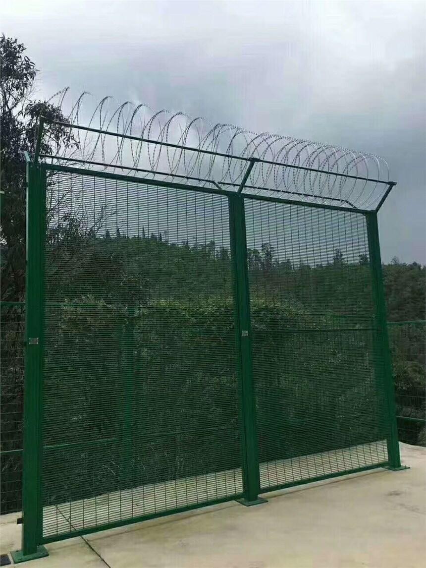 围墙刺丝防护网有钢筋混凝土防护栅栏、矩形管栅栏、铁路防护栅栏等。立柱分为镀锌钢管、复合管以及C型钢等,网片分为包塑钢丝网、PVC包塑电焊网、勾花网以及钢板网和冲孔网。