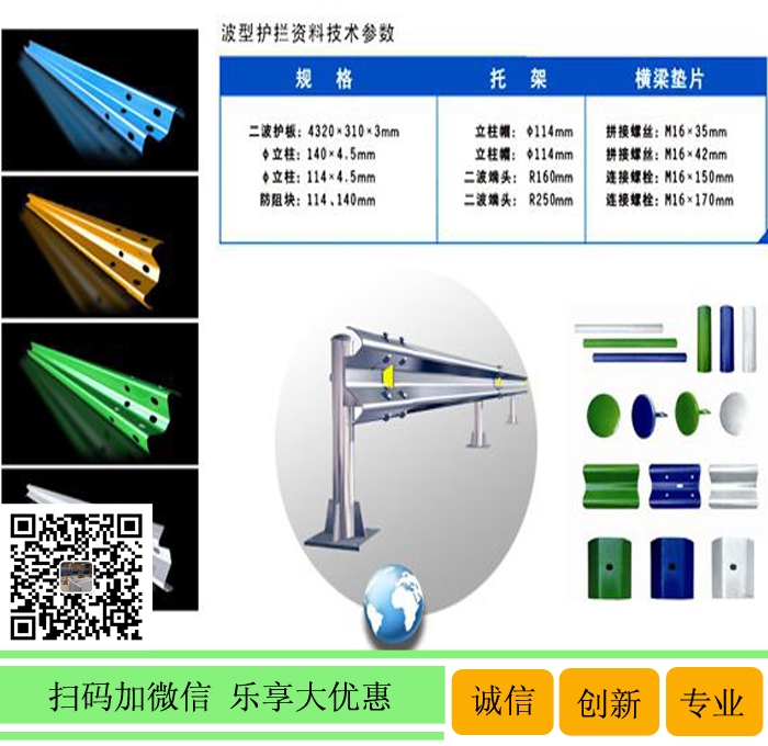 双波形梁护栏板:长4320mm,宽度310mm,波高85mm,板厚:3mm、4mm;