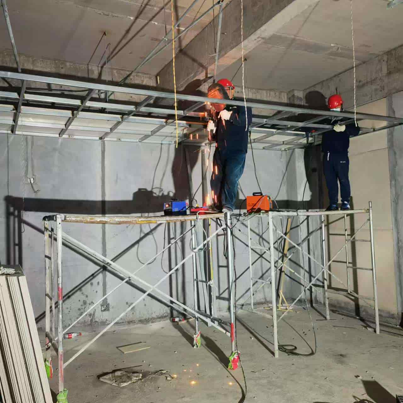 根据我方施工图和现场实际情况在各机房弹水平线作为控制线,并以次根据图纸弹出棚面和地面水平控制线。