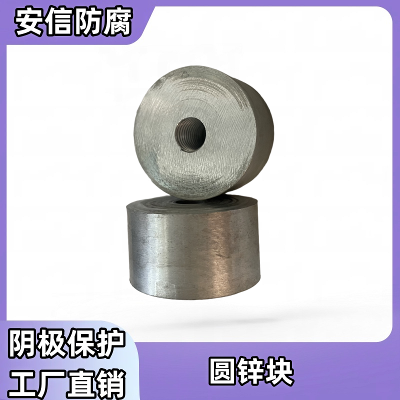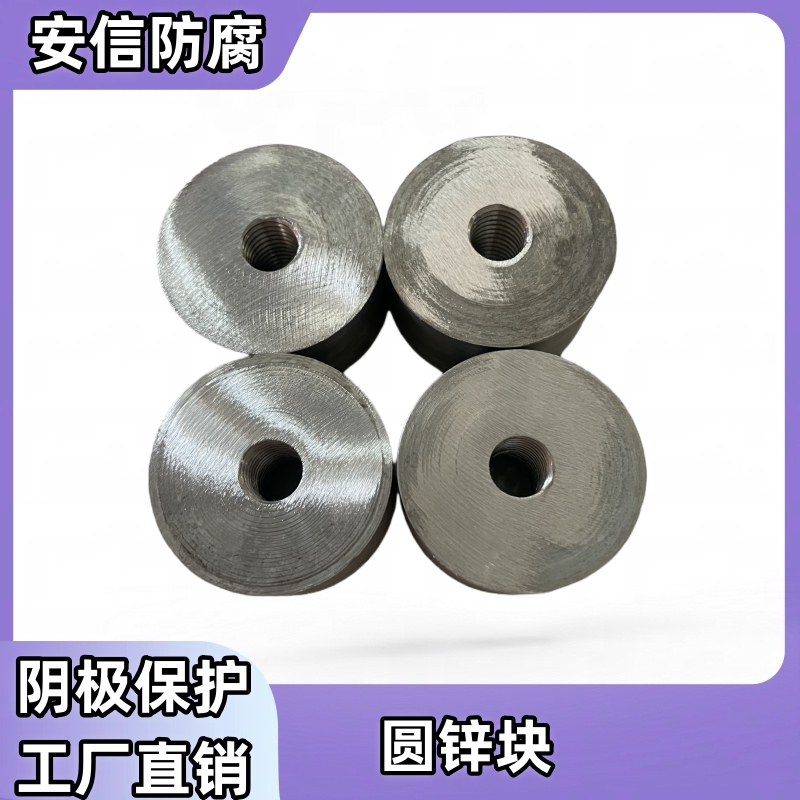 锌也可做成镯式阳极,主要应用在水下和海底管道上,一种是作成块状然后焊接在钢支架上形成一个圆形,还有直接做成环状,直接扣在管道上。