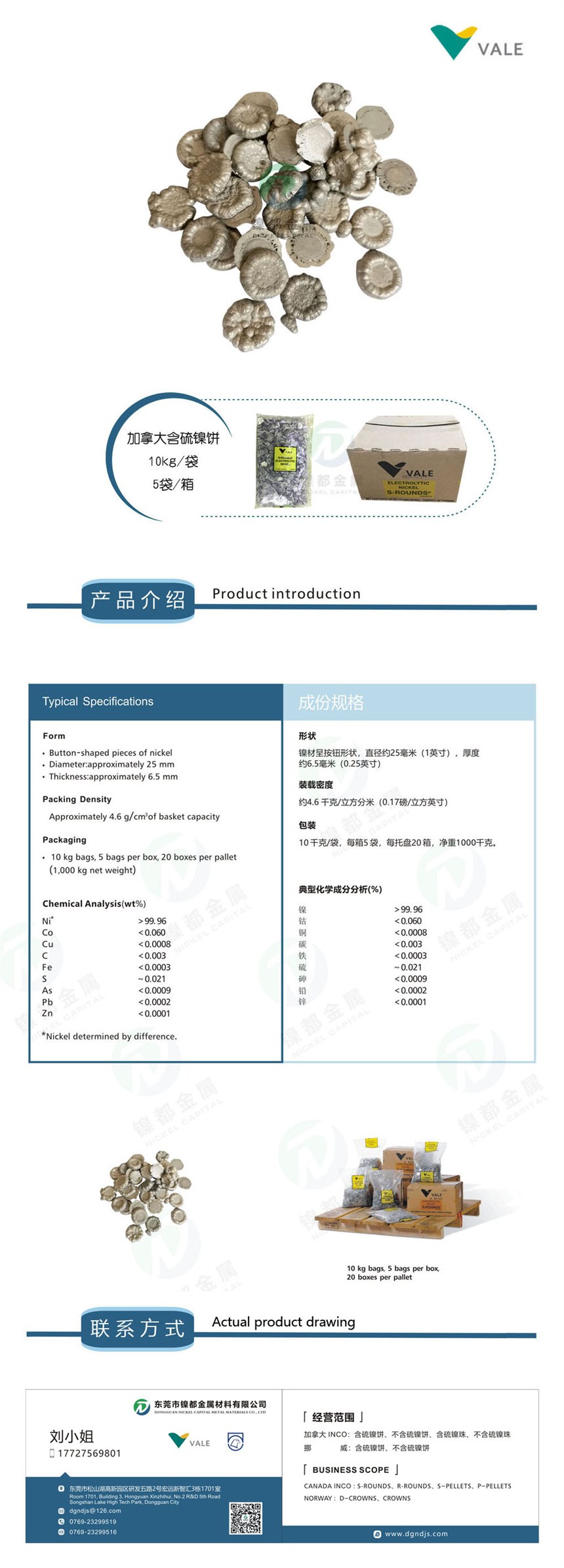 含硫镍饼,加拿大含硫镍饼,英可含硫镍饼,INCO含硫镍饼,梅花镍,镍圆饼 |