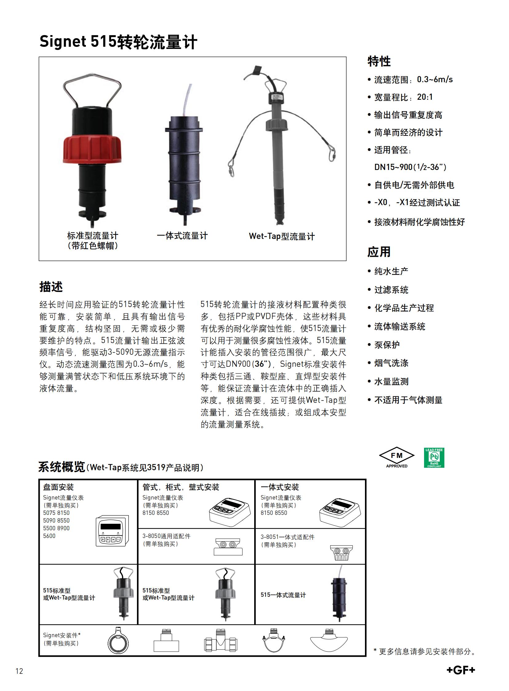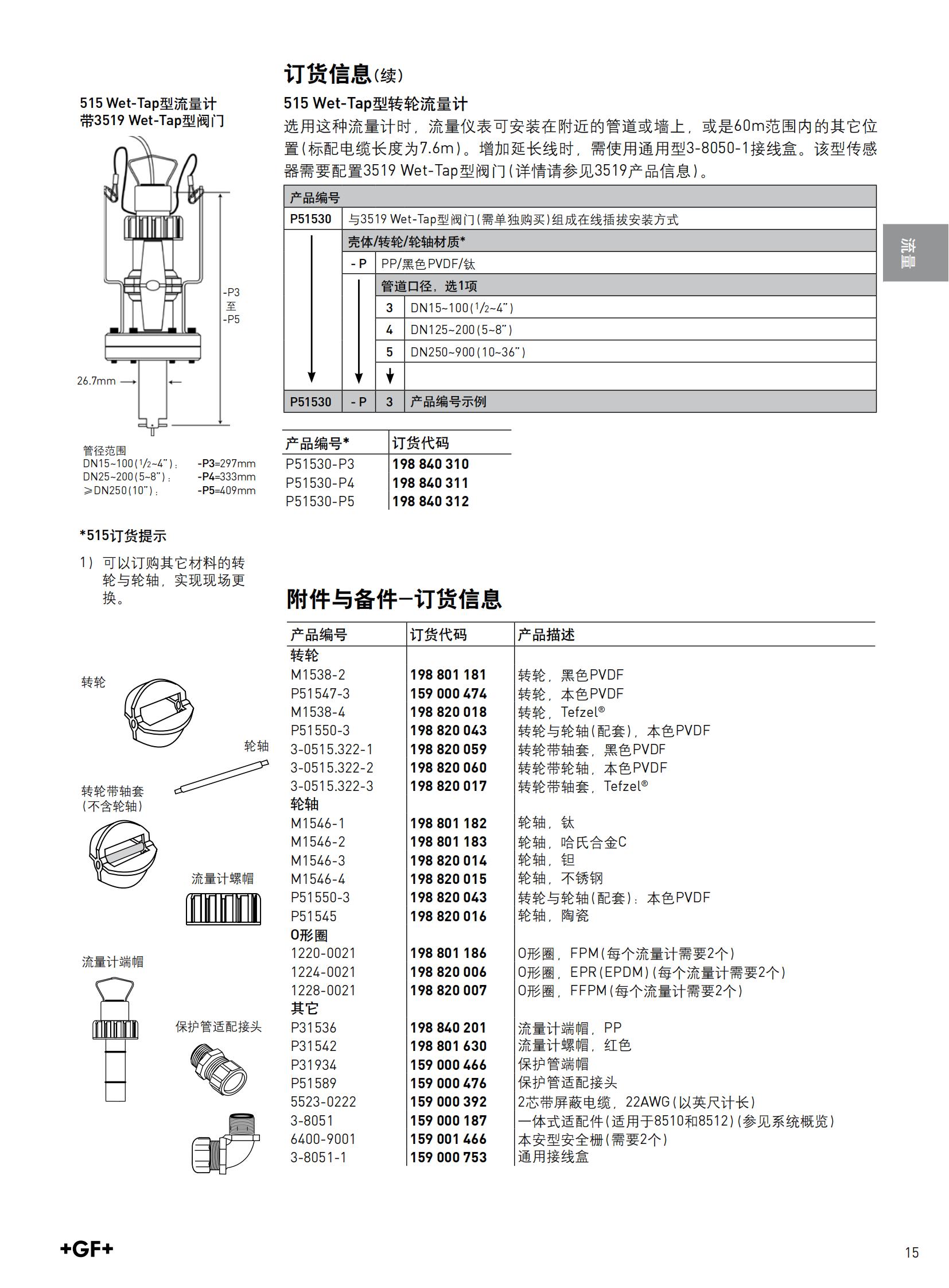 GF转轮流量计P51530-P0/P51530-P1流量传感器探头 测量范围 | 0.3-6m/sm3/h | ||