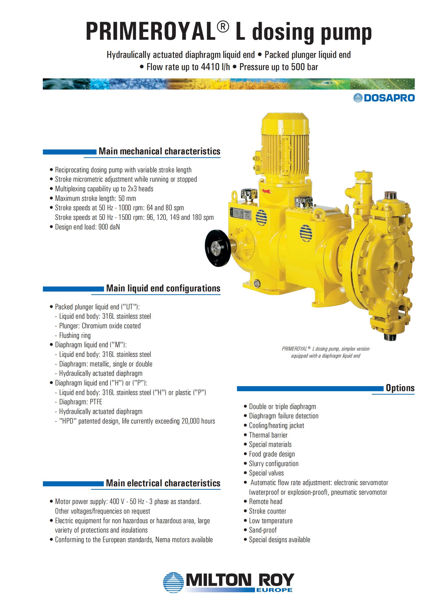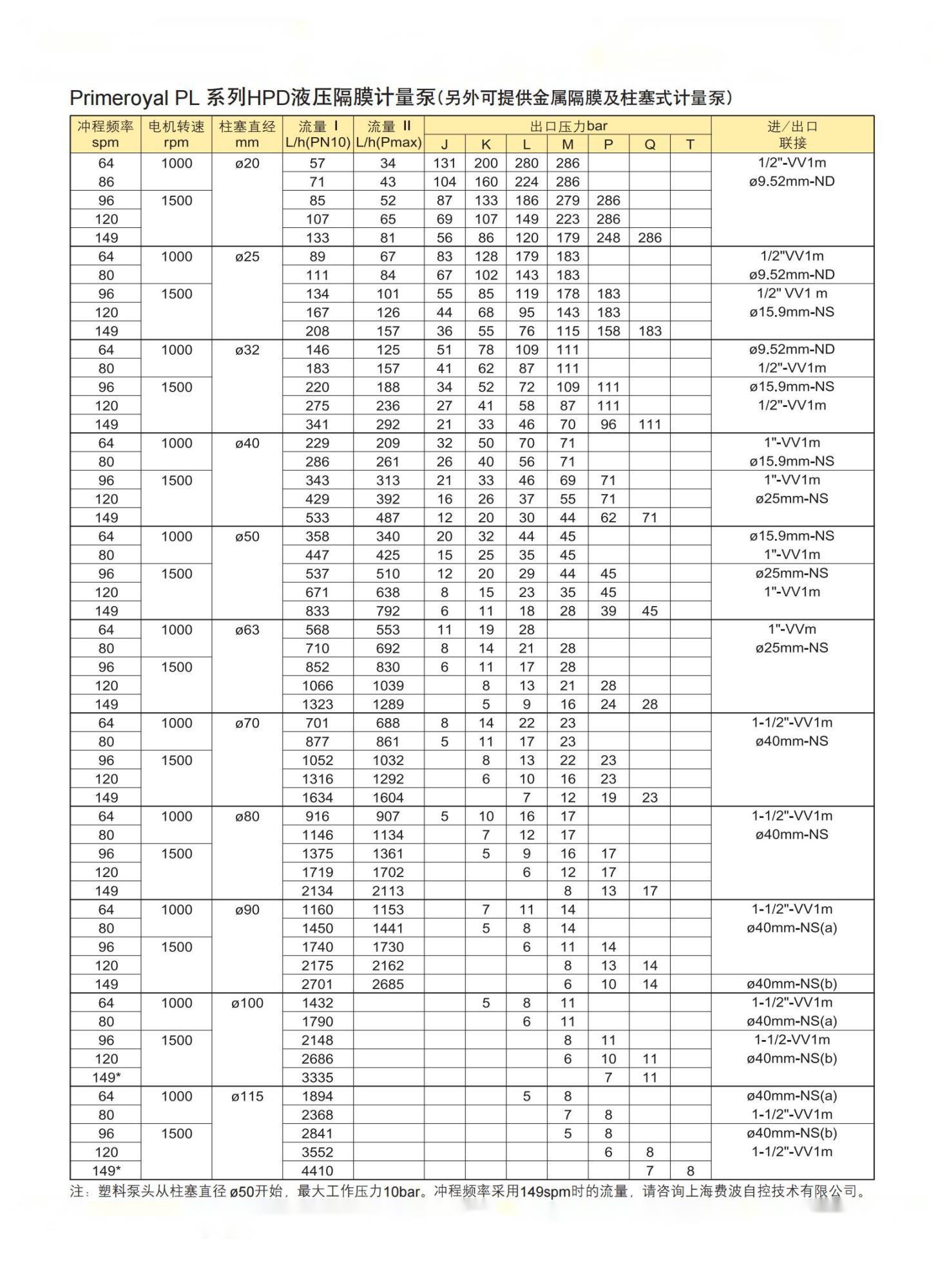 进口多头泵PL149Q100H10/C5.VV3米顿罗液压隔膜计量泵 功率 | 1.2 | ||