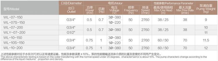 ? ? 上述性能曲线对应于水在20℃时以正常速度运输。扬程和流量的误差是±10,性能误差±10。泵的性能随输送流体介质的比重及密度的不同而产生变化。