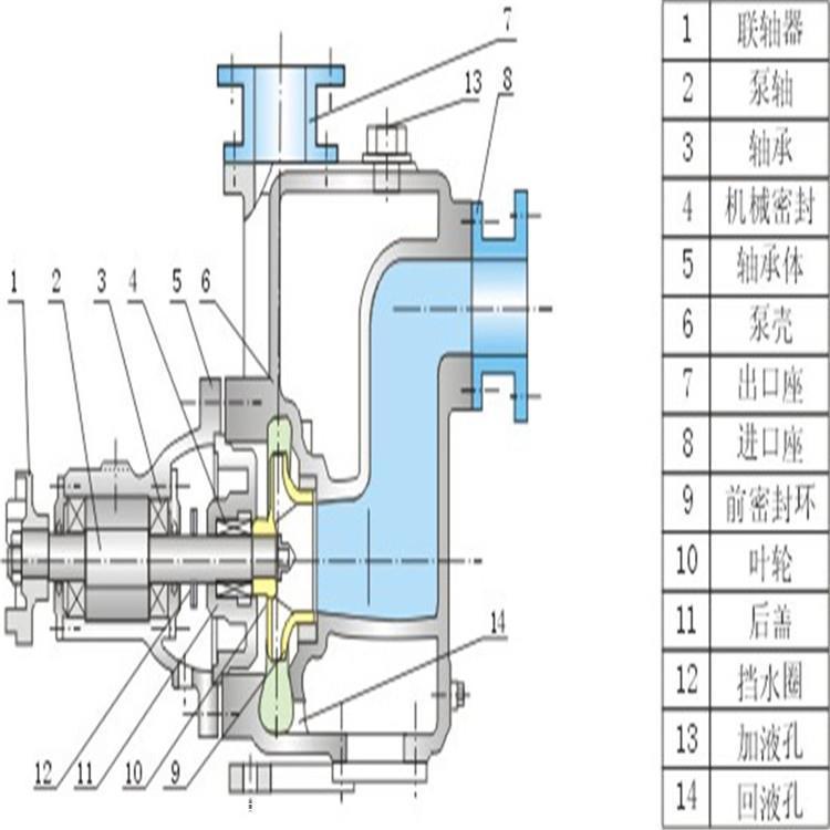 该泵属自吸泵,它具有结构紧凑,操作方便,运行方便,维护容易,效率高,寿命长,并有较强的自吸能力等优点。管路中不需要安装底阀,工作前只需保证泵体内储有定量引流液即可,因此简化了管路系统,又改善了劳动条件。