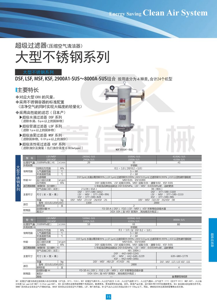 空气处理量 | 0.32 M3/min ~ 14.9 M3/min | ||