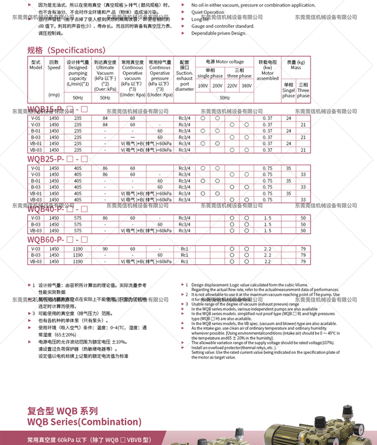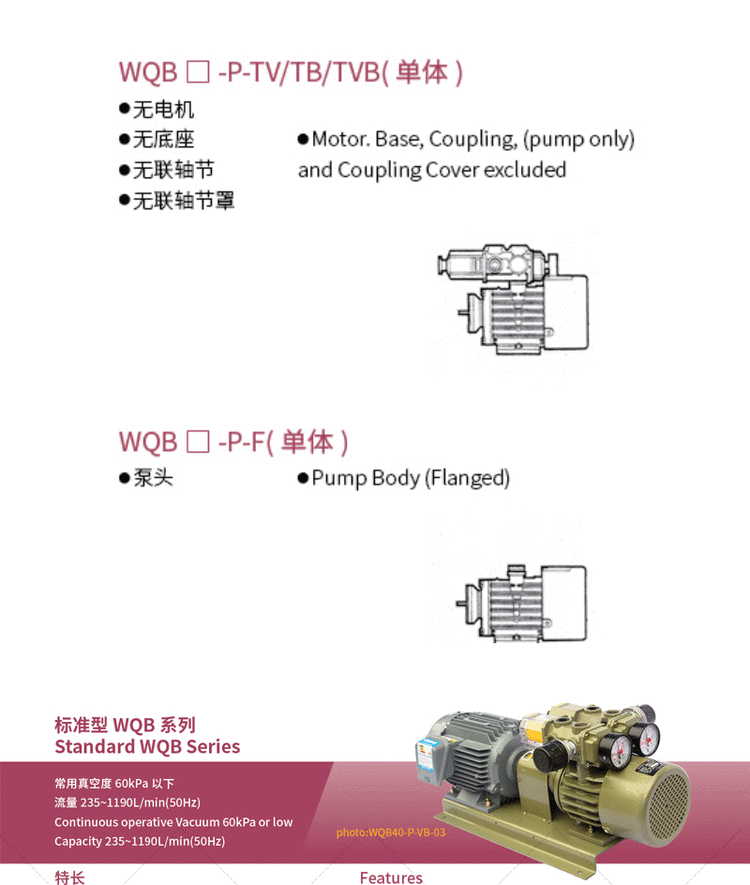 上海宇旭YUXU电动真空泵WQB40-P-B-03立方无油旋片泵工业用印刷雕刻塑料制品真空吸塑