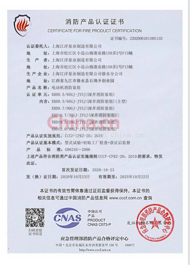 石门县22KW消防泵XBD5.5/25G-L CCCF 喷淋泵, 商场专泵,小区***泵 品牌 | 上海江洋 | ||