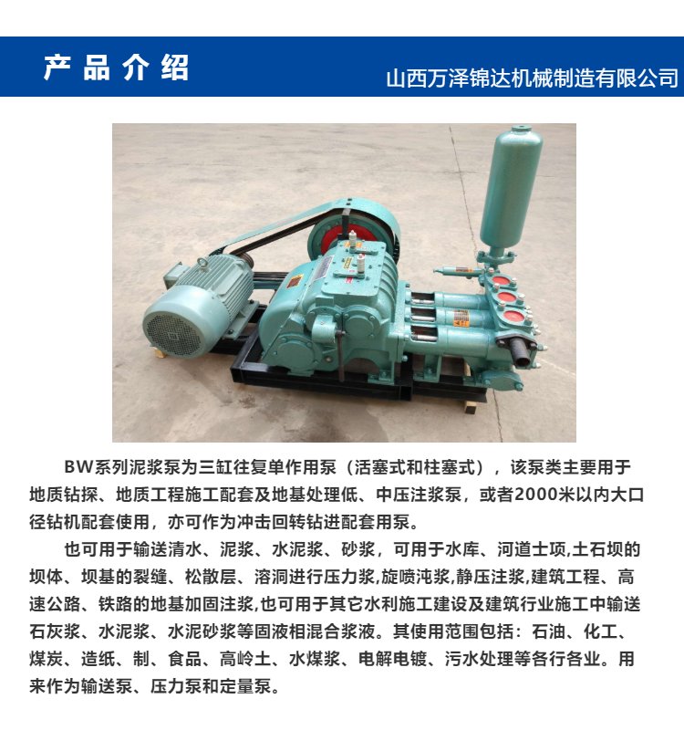 用途 | 钻机配套、清水、泥浆、水泥浆输送 | ||