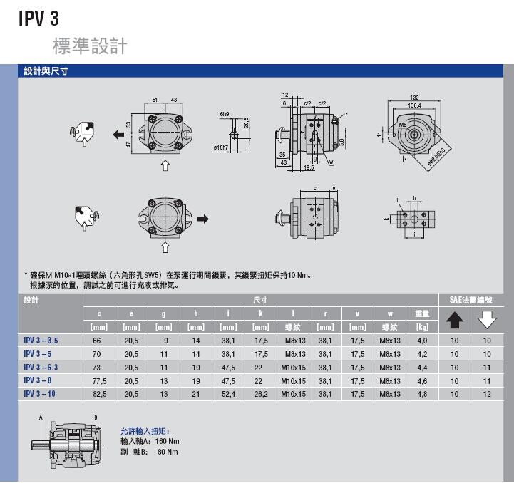 福伊特IPVP3-10-171每转排量10.2ml,采用两孔法兰安装,圆轴平键,油口为法兰式连接。连续工作压力330bar,峰值压力可达到345bar,低转速400转/分,高转速可达3600转/分。
