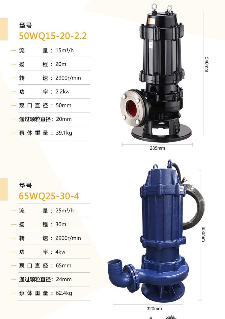6寸潜水泵150WQ200-15-15生活废水提升泵市政排污泵污水处理潜污泵
