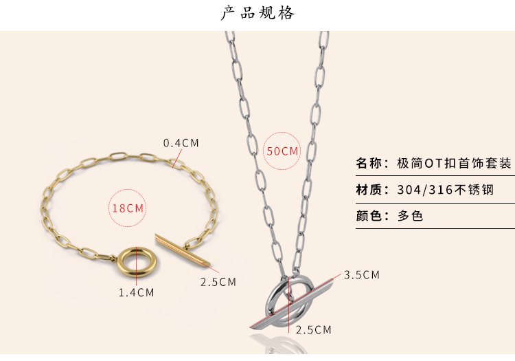 极简风经典OT扣素链美中性款不锈钢首饰项链手链批发